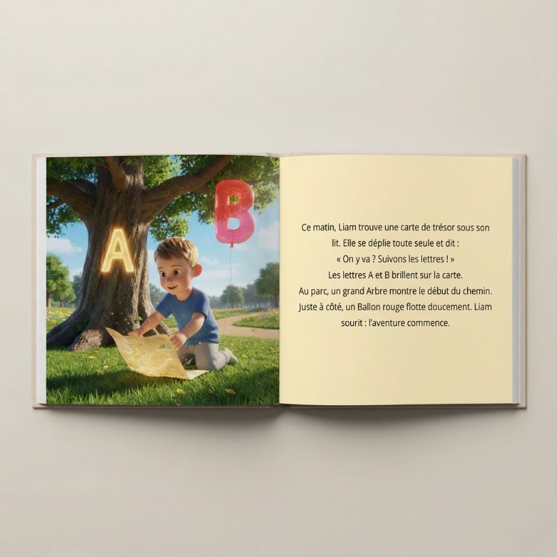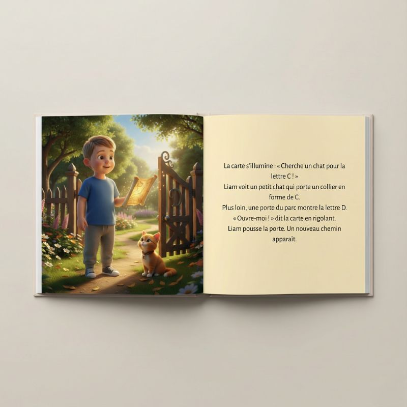 - Livre de 24 pages avec 12 illustrations de votre enfant dans l'histoire et 12 pages de texte.
