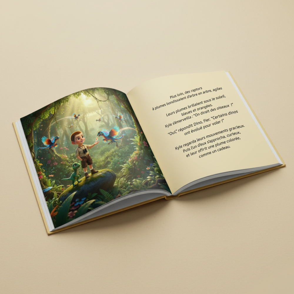 - Livre de 24 pages avec 12 illustrations de votre enfant dans l'histoire et 12 pages de texte.